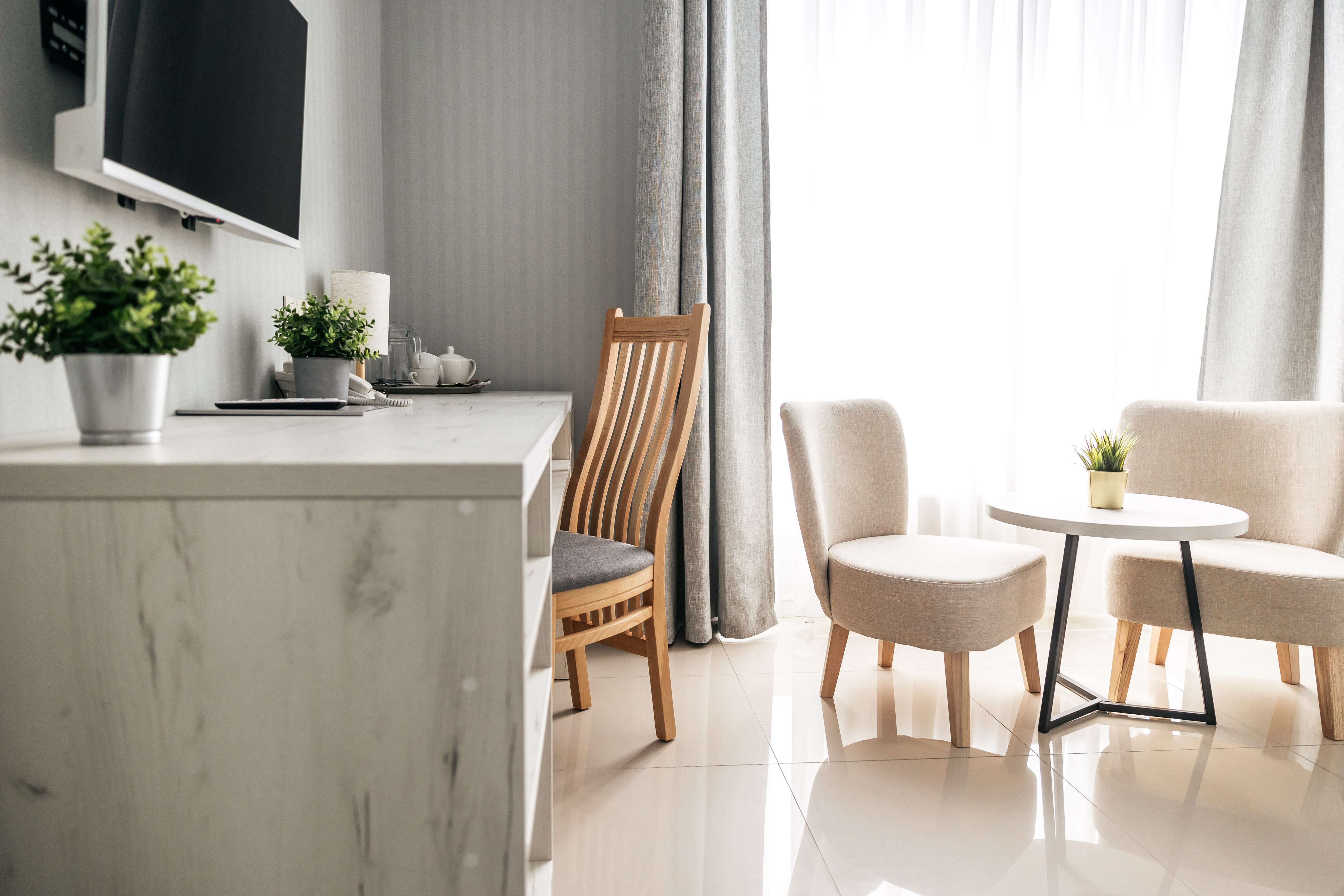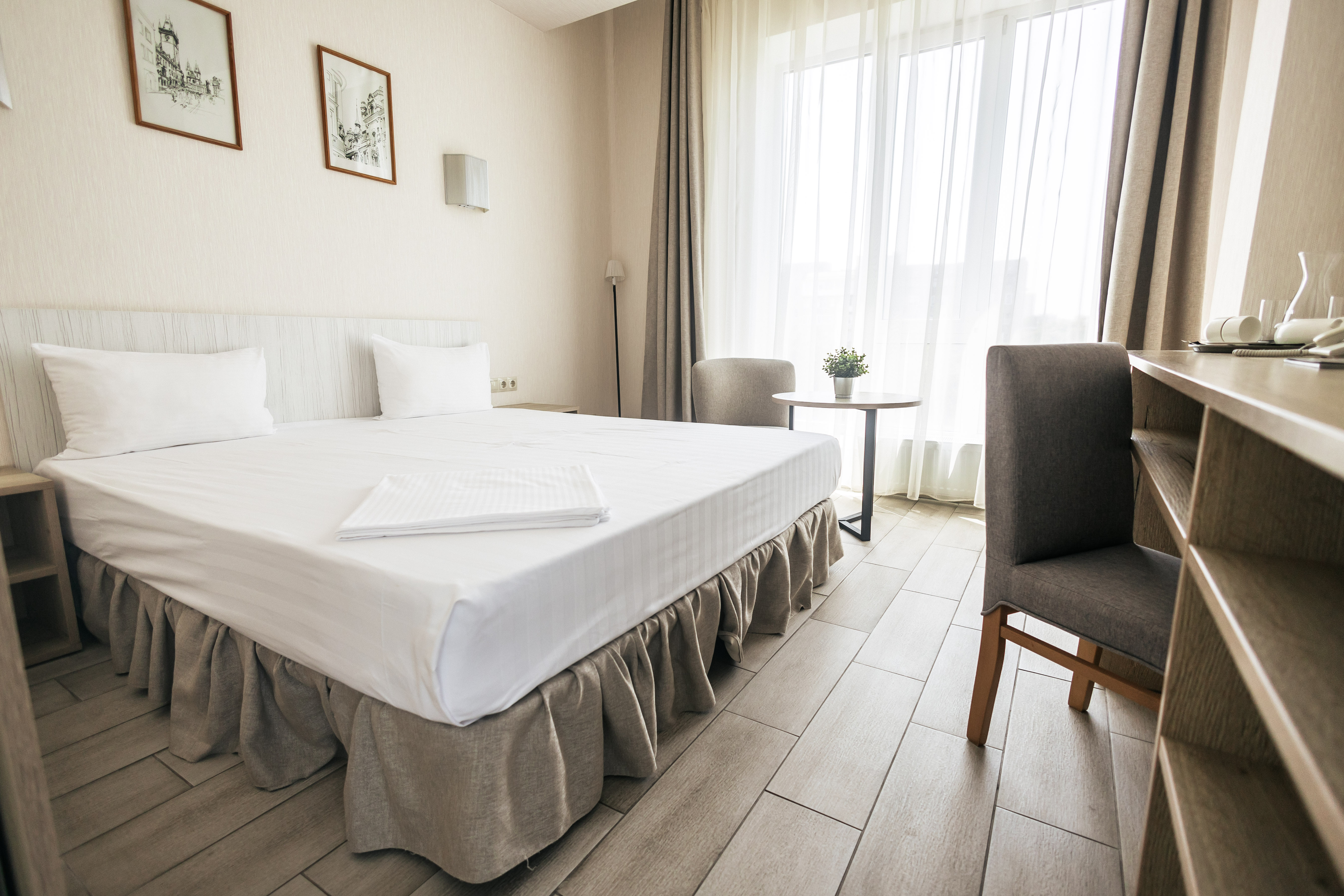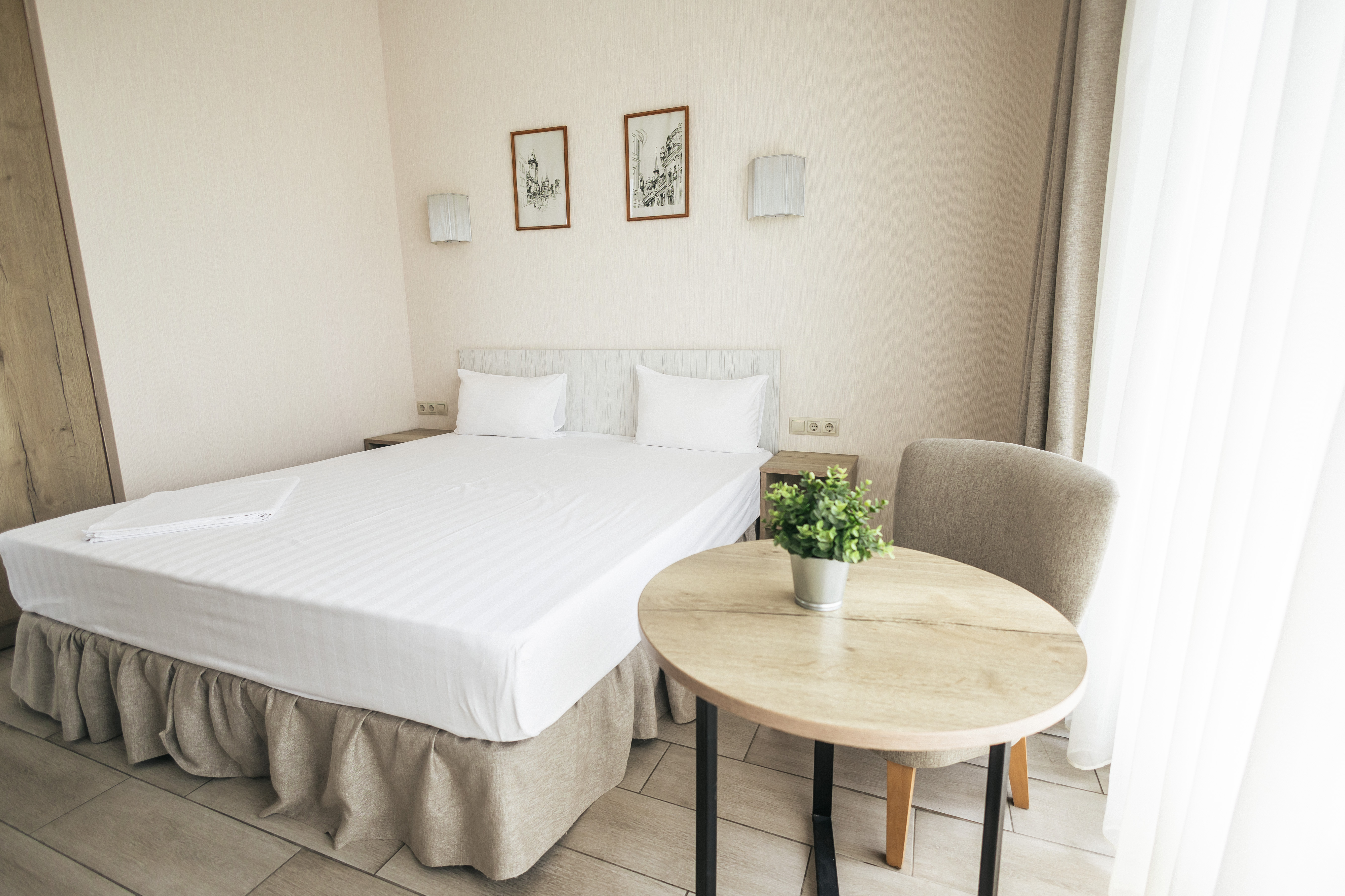 Два спальных места. Одна большая кровать (180х200) или 2 раздельные кровати (90х200) на выбор гостей. Площадь номера 18-20 кв м. Большие панорамные окна, портьеры блекаут. Большой телевизор Smart TV, холодильник, кондиционер, Wi-Fi, рабочий стол, кофейный столик. Чайные наборы и косметические принадлежности. Санузел оснащен душевой кабиной. Завтрак входит в стоимость номера, а также посещение тренажерного зала.